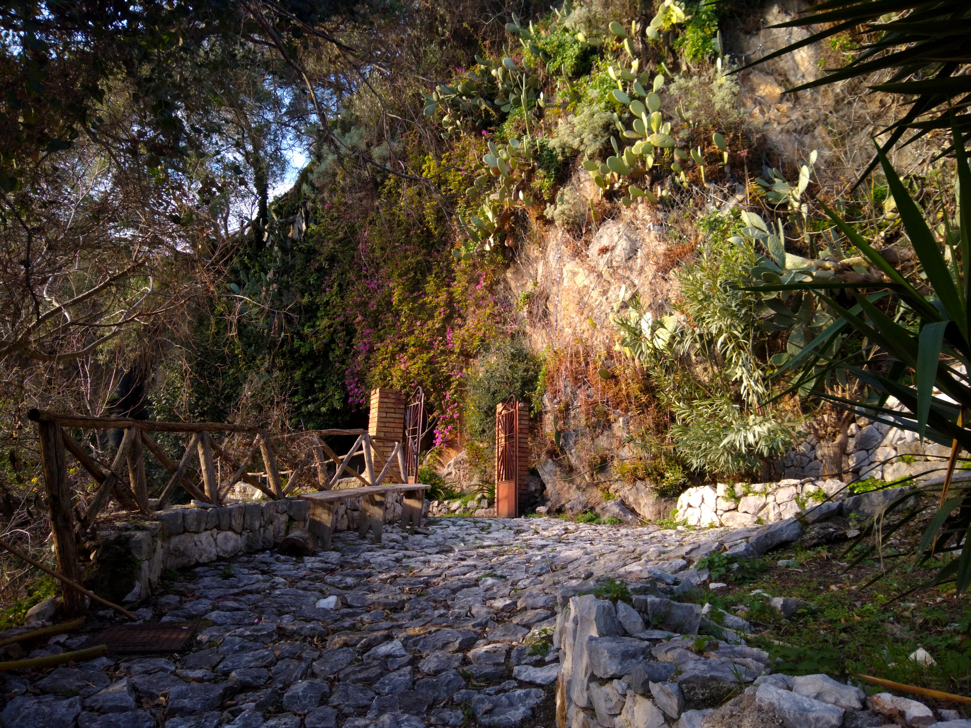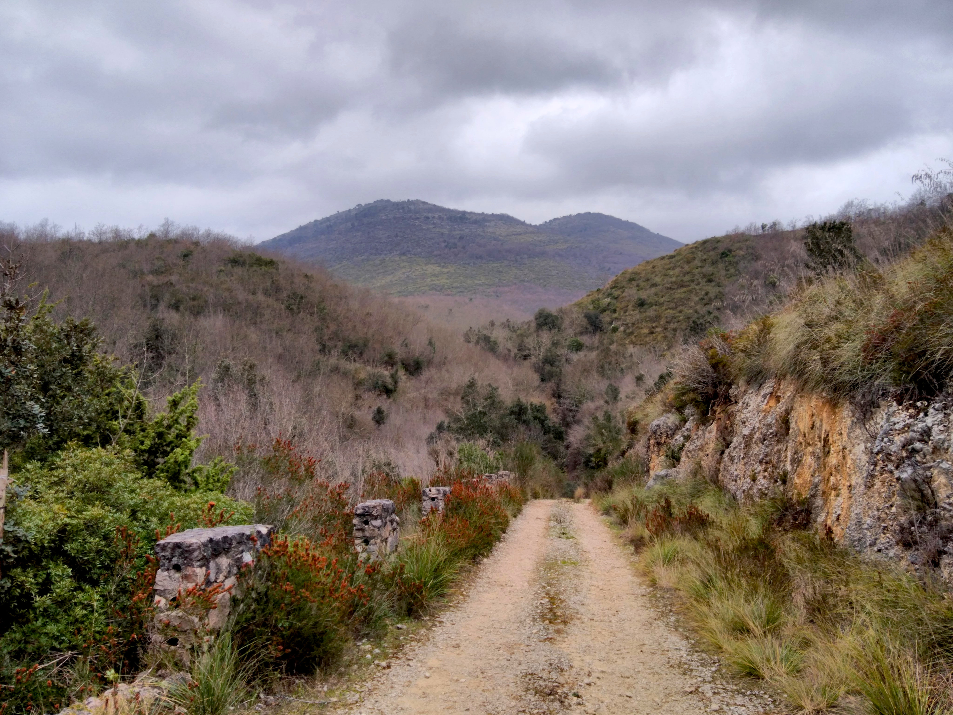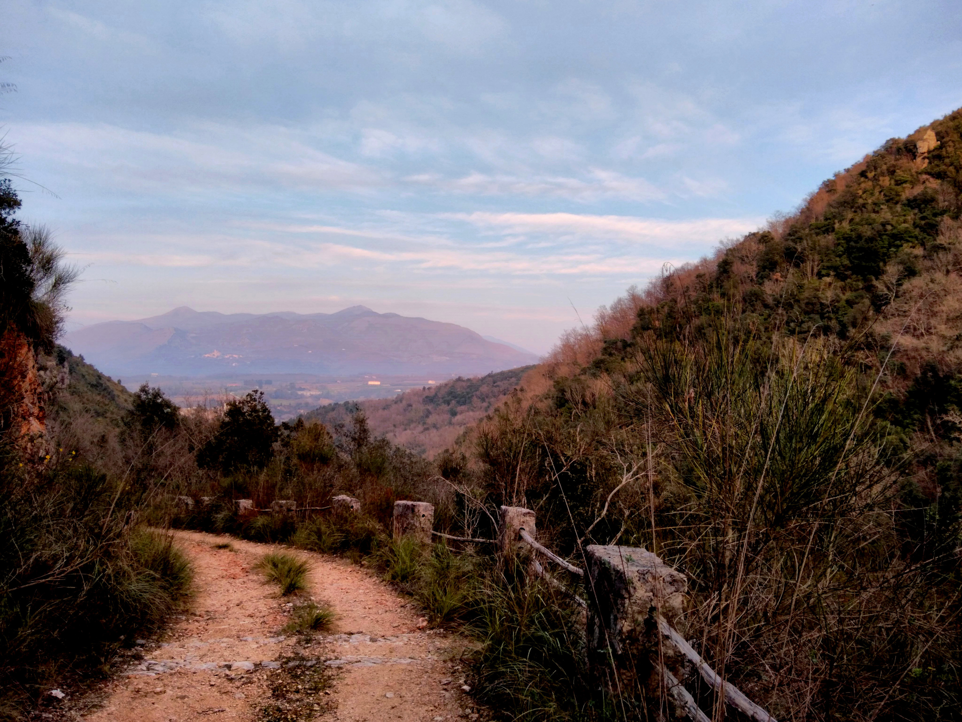 To this day there are a number of spas on the road which follows the Garigliano river, with their constantly-flowing streams of hot water and strong sulphur smell. The sentiero pictured here crosses the valley and arrives in Campania.